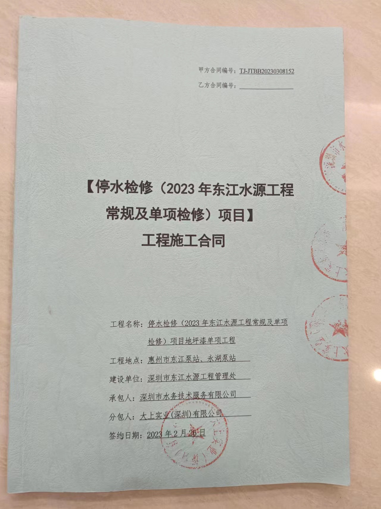 工程名稱:停水檢修(2023年東江水源工程常規(guī)及單項(xiàng)檢修)項(xiàng)目地坪漆單項(xiàng)工程