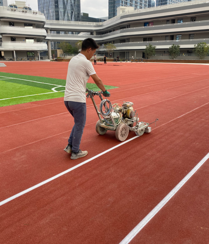 預制型橡膠跑道是以天然橡膠和合成橡膠為主要原料,在工廠以卷材的形狀生產而成。出廠時已經是成品橡膠跑道,可以直接鋪在操場上,避免了施工現場各種因素對產品質量的影響。預制型橡膠跑道可直接鋪設在水泥混凝土或瀝青基礎上,施工工藝簡單。使用少量環保膠即可完成施工粘接,快捷、安全、環保。施工質量易于控制,不易發生施工質量事故,但對場地平整度要求較高。