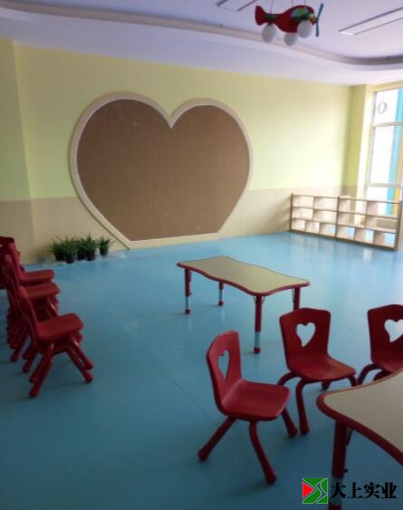 幼兒園教室內(nèi)的PVC地板,不用擔(dān)心回南天地板潮濕,PVC地板可以抵抗任何天氣。