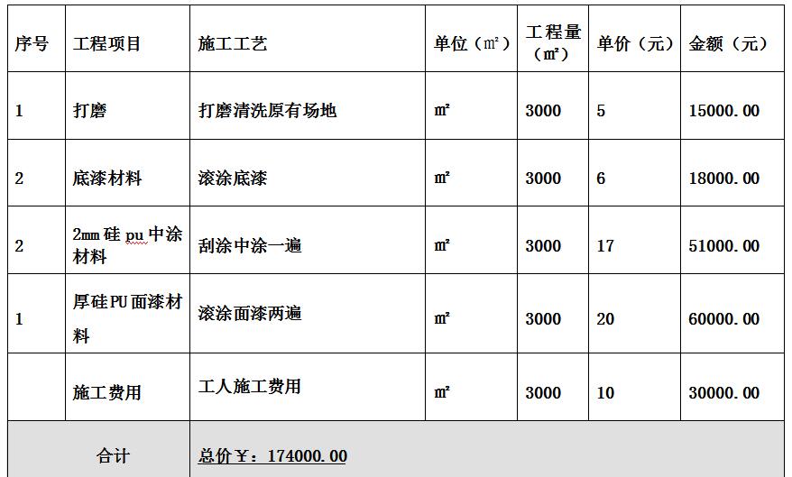 一:硅pu籃球場施工報(bào)價(jià)單: