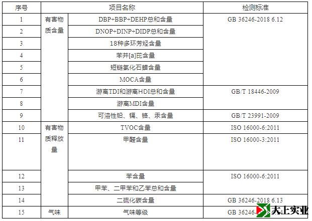 2018 年國家標準 GB 36246-2018《中小學合成材料面層運動場地》正式發布,代替 GB/T 22517.6-2011《體育場地使用要求及檢驗方法 第 6 部分:田徑場地》,其中除了對合成材料面層成品有害物質的含量作出規定外,又新增了有害物質限量及氣味要求。
