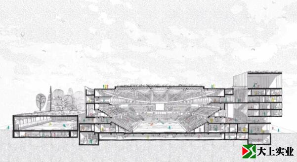 該項(xiàng)目將體育,文化和社交場所融合在一起,將現(xiàn)有場所重新構(gòu)想為城市社會文化園區(qū)。實(shí)際上,在建成后,該建筑將充當(dāng)“向各種受眾開放的公共平臺,以進(jìn)行各種活動,努力振興這個長期被遺忘的城市區(qū)域”。