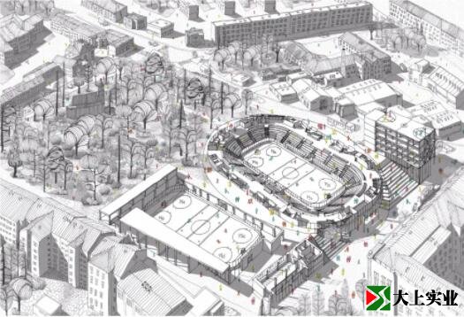 該市現(xiàn)存的曲棍球場建于1956年,是一個日益退化的室內(nèi)運(yùn)動場,該項(xiàng)目將對原有的結(jié)構(gòu)進(jìn)行重新設(shè)計(jì),擴(kuò)建為一座可容納5600名觀眾的四層多功能中心。