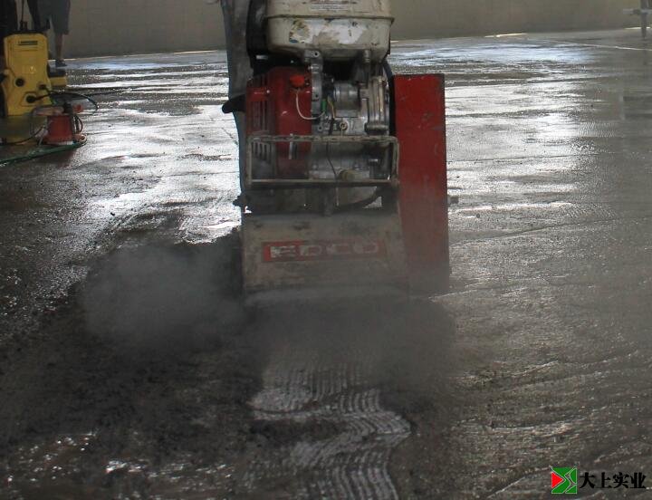 因此,我們首要任務是如何將混凝土是的油污弄干凈。我們嘗試了各種方法,如使用化學品清潔劑,但最有效的是打磨。通過在整個地板上運行打磨兩次,我們能夠消除95%的油污問題,我們打磨掉了幾毫米的混凝土,其余5%的油污問題我們再通過清潔劑清洗。