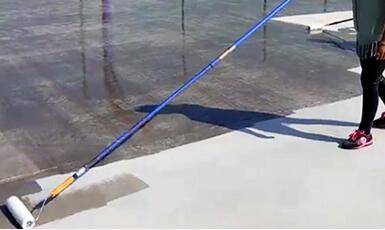兌水后攪拌均勻,滾筒涂刷(底漆+自來水=1:1)