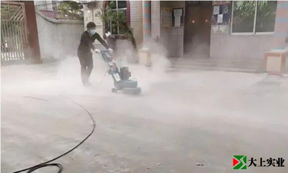 使用打磨機對地面進行打磨清理地面,把基礎地面的浮渣和灰塵打磨清理掉。