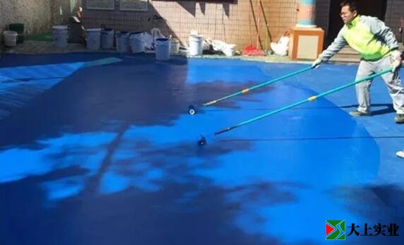 打開水性丙烯酸面漆,(天氣熱適當加水)使用電動攪拌機充分攪拌均勻,用刮刀刮涂地面,然后用滾筒滾涂收尾,待干后進入下一步工序。(2層)