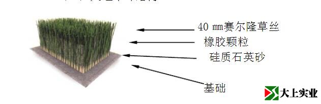 (1)翠綠色人造草坪: 草高40㎜,草纖維度:11000TEX; 底布材質:三層底布