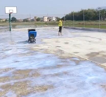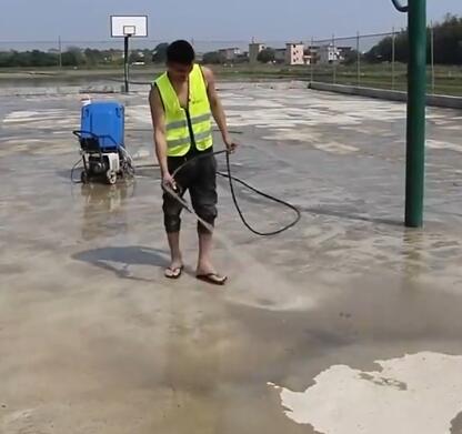 在用高壓水槍進行沖刷干凈,這樣做的目的是讓底漆和地面粘結牢固。