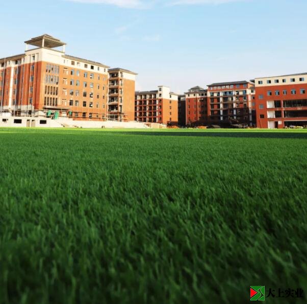 放眼望去,田徑場顏色翠綠與深綠相間,微風吹過,綠波蕩漾,一片生機勃勃。從高處往下看,操場位置處在學校中心位,在蘇格蘭紅磚墻教學樓的襯托下,就像一顆閃耀著碧綠光芒的綠寶石,耀眼奪目!