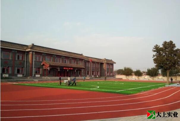 人造草足球場。新的塑膠跑道平整劃一,耐磨性強。塑膠良好的彈性和防滑性,可有效保護學生運動時帶來的傷害,是我區進一步推動學?;A設施建設,優化育人環境,改善學校體育運動條件的又一項利學利教的民心工程。