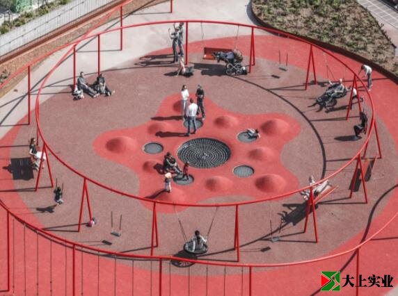 大齡兒童區(qū)設(shè)置了秋千、索道、賽道、跑道、投籃區(qū)、沙池等游樂(lè)設(shè)施,同樣也設(shè)置了大人看護(hù)座椅,在這個(gè)區(qū)域設(shè)置的是易于進(jìn)入這些區(qū)域的清晰通道,以應(yīng)對(duì)大齡兒童快速和無(wú)預(yù)兆的情緒轉(zhuǎn)換。