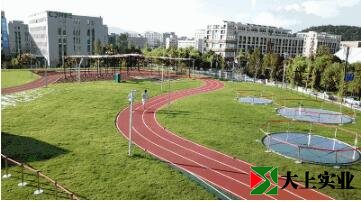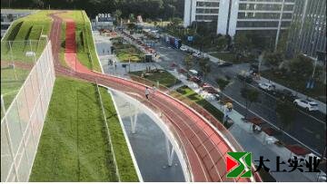 紅色部分是跑道,綠色、橙色屬于慢行道,可以有效地減少相互干擾。整條跑道和以往見(jiàn)過(guò)的任何一條操場(chǎng)跑道都不一樣