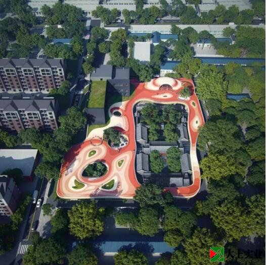 北京的四合院幼兒園由MAD設(shè)計(jì),馬巖松說(shuō):“老北京有句形容孩子淘氣的俗話,‘三天不打,上房揭瓦’。屋頂對(duì)孩子來(lái)說(shuō)是充滿魔力的。在四合院空間中,屋頂就像是一片新的大地,是無(wú)拘無(wú)束、自由的象征。”
