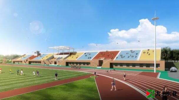 競賽場地8道400米標準跑道和8道100米直道由原來的爐渣鋪面改造為新型的硅PU塑膠面層。