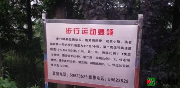 還有樹立在跑道一旁的運動要領,提醒大家運動時按注意該把握的事項。