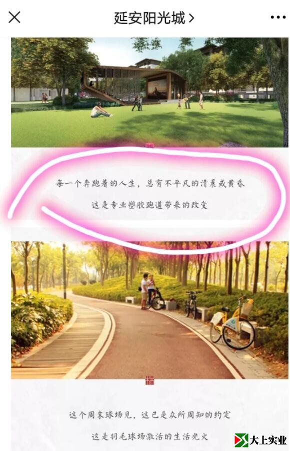 該開發商打算就這樣給業主交差?還是在這個噴漆水泥石子路上還會加鋪塑膠跑道?或者是還沒建,需要業主再耐心等待?讀者你的看法呢?陽光城二三五地塊業主請進群談談你的感受。