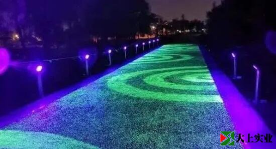 熒光跑道一般是在塑膠跑道或者瀝青道路的施工的同時,加入夜光石或者熒光粉,從而達到提升跑道整體品質和夜間視覺效果的目的。跑道在夜間會發出色彩斑斕的炫彩圖案,營造出銀河星空般的夢幻效果,為跑步愛好者尤其是夜跑愛好者提供了一個夢幻般的夜跑空間。