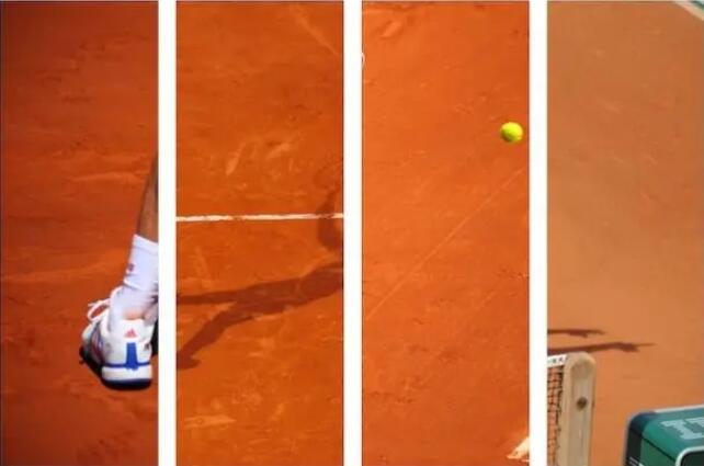 由于場地表面松動的紅土,與硬地相比,球落在紅土場地上后,帶有上旋的球會更多的陷入的場地中,這樣一來場地會強化上旋的效果,得到了球彈跳更高的結果;其次,球與地面接觸后會以大角度離開地面。而在硬地球場上,球與地面接觸后,彈跳的角度則平緩很多。另外,由于表面松動的土層會隨時變化,當球落到不平整的地方會發生不規則彈跳。紅土球場的“變幻莫測”在于此。再補充一下,紅土球場的邊線為塑料材質,球落到線上球速還會變突然快。