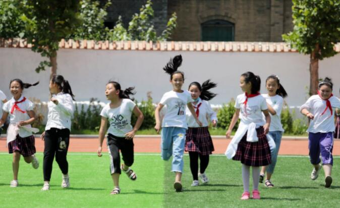 6月25日上午,記者來到城關小學,四年級五班的孩子們正在塑膠運動場上體育課。孩子們在老師的指導下做操、跑步、玩游戲,熱鬧非凡又井然有序。
