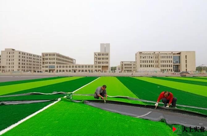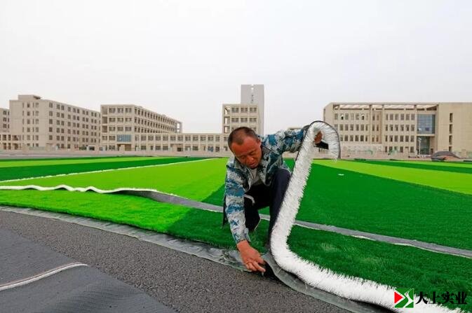 灤南新一中足球場開始鋪設人造草坪