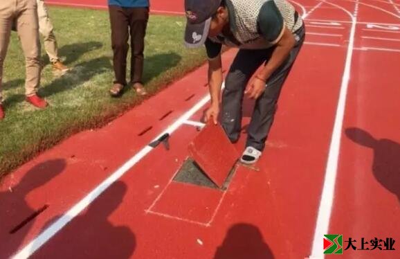 由施工方、工程監理、學校、村委領導、家委會代表組成的運動場塑膠質量檢測送檢現場