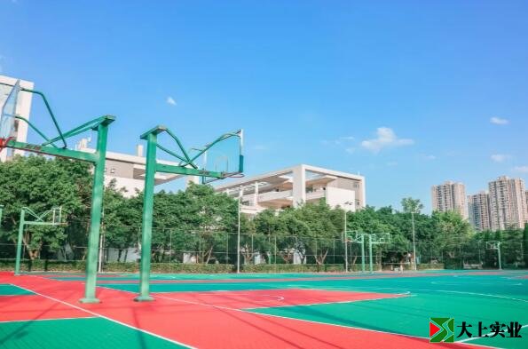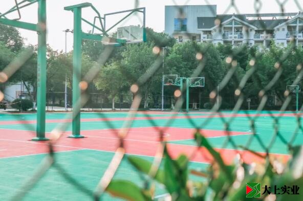 一改以往灰白色調,籃球場煥然一新。紅綠配色在夏日炎陽中給人眼前一亮的清新感,也給校園增添了新活力。