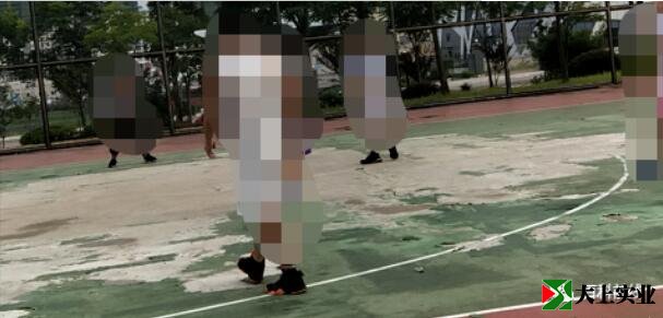2.體育館室外籃球場自建成投入使用以來,一直缺少維護修繕,由于使用頻率高,目前地面已經(jīng)破爛不堪,多處地方有地面裂開破損的現(xiàn)象,對于打球的人來說,隨時伴有滑倒摔跤的可能。而且以前還有凳子供休息,但是破損后就被拆了,很多人就把電瓶車騎進來供休息時坐一會,所以里面的車越來越多,很不文明。